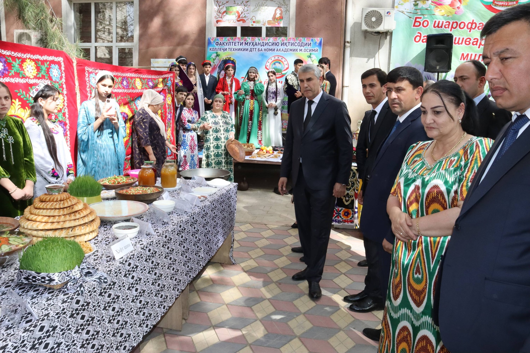 Пас аз баромади роҳбари муассиса меҳмонону аҳли раёсати коллеҷ аз оростани дастурхони Наврӯзии садорати факултетҳо дидан намуданд. Дар чорабинӣ ҳамаи факултетҳои коллеҷ, дастархони идонаи “ Ҳафт син”-у “Ҳафт шин” ороста, омад-омади баҳори нозанинро мужда доданд.